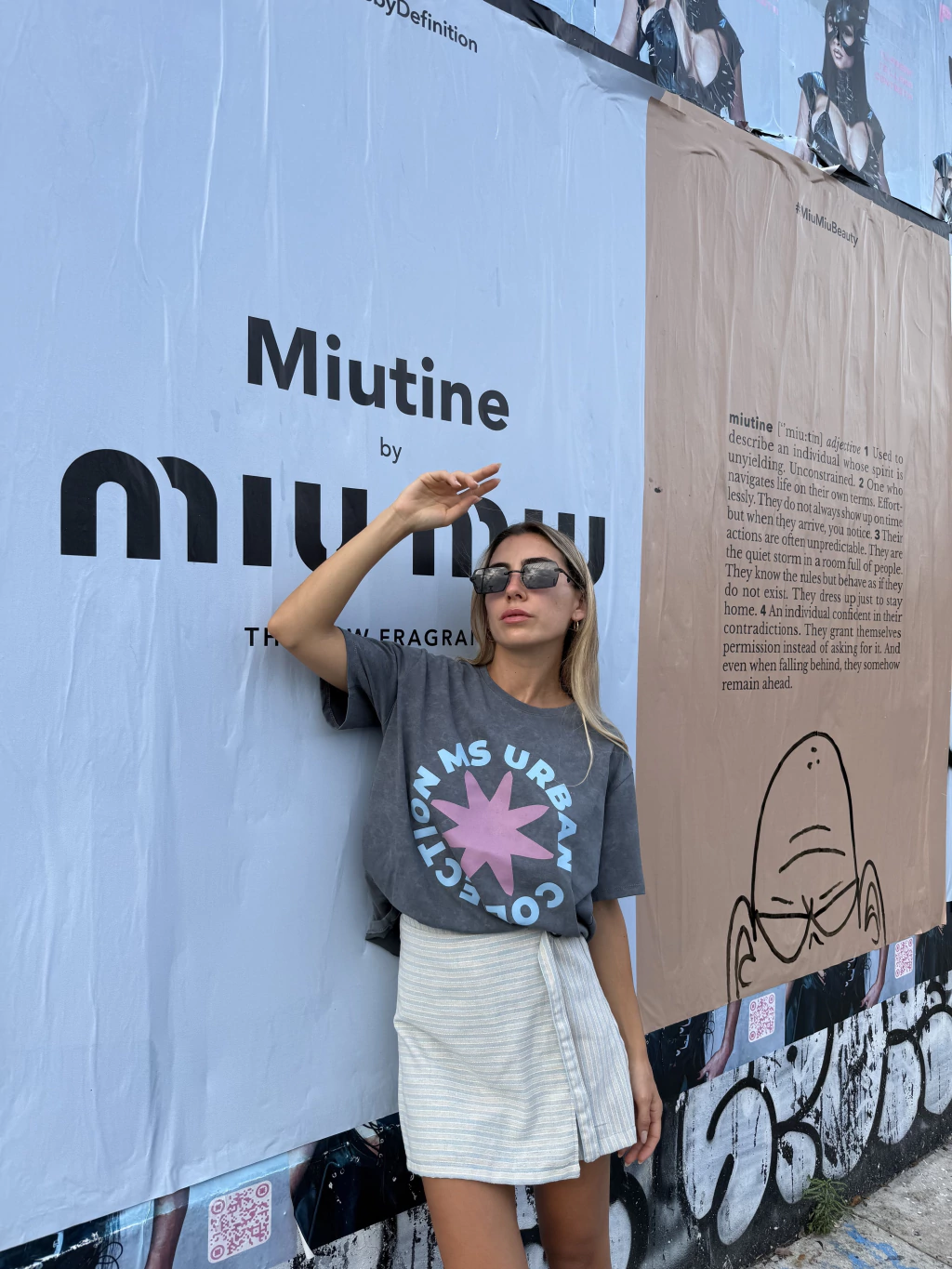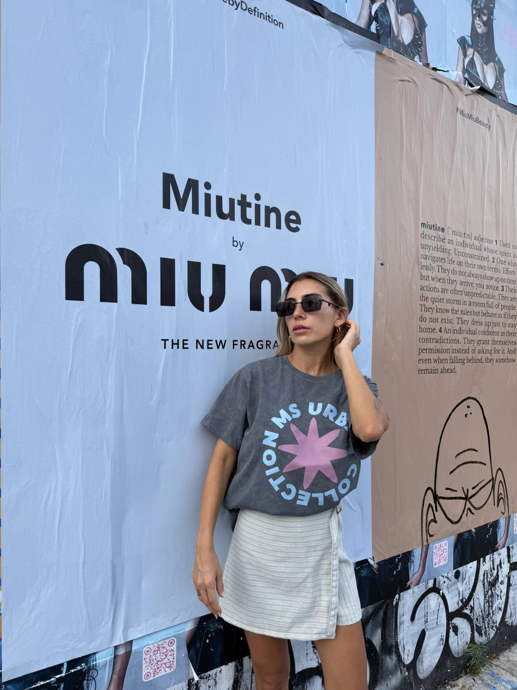 Remera básica, mangas cortas con escote redondo. Estampa de la nueva colección.